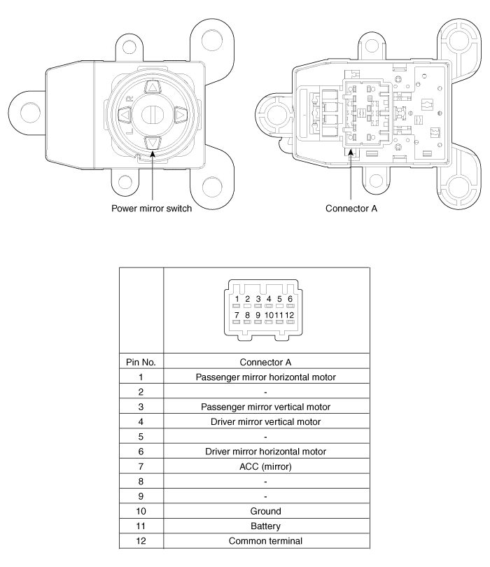Hyundai Veloster: Power Outside Mirror Switch. Schematic Diagrams